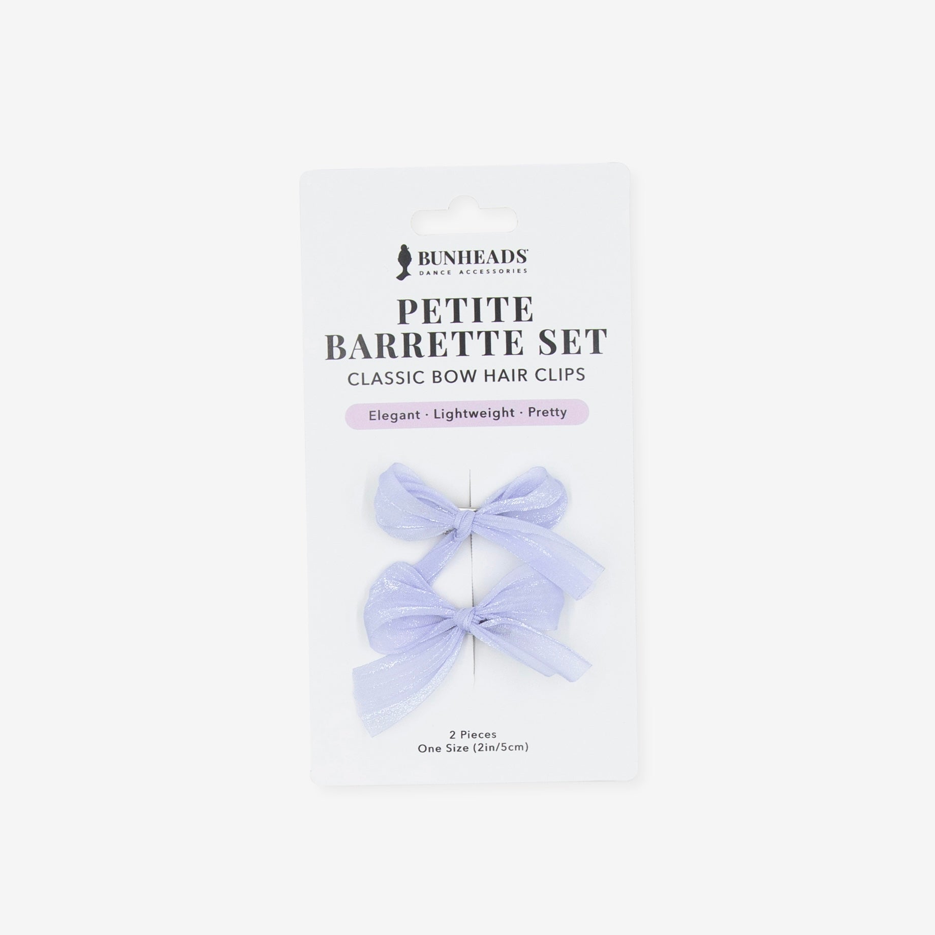 Add an elegant touch to any hairstyle with the Bunheads petite barrette set. Each soft, lightweight fabric bow is perfectly pre-tied on a miniature alligator clip for comfortable, all-day wear. Designed to complement all hairstyles and lengths, these stylish barrettes are the perfect finishing touch to any outfit. Contains 2 bow hair clips. BH1730