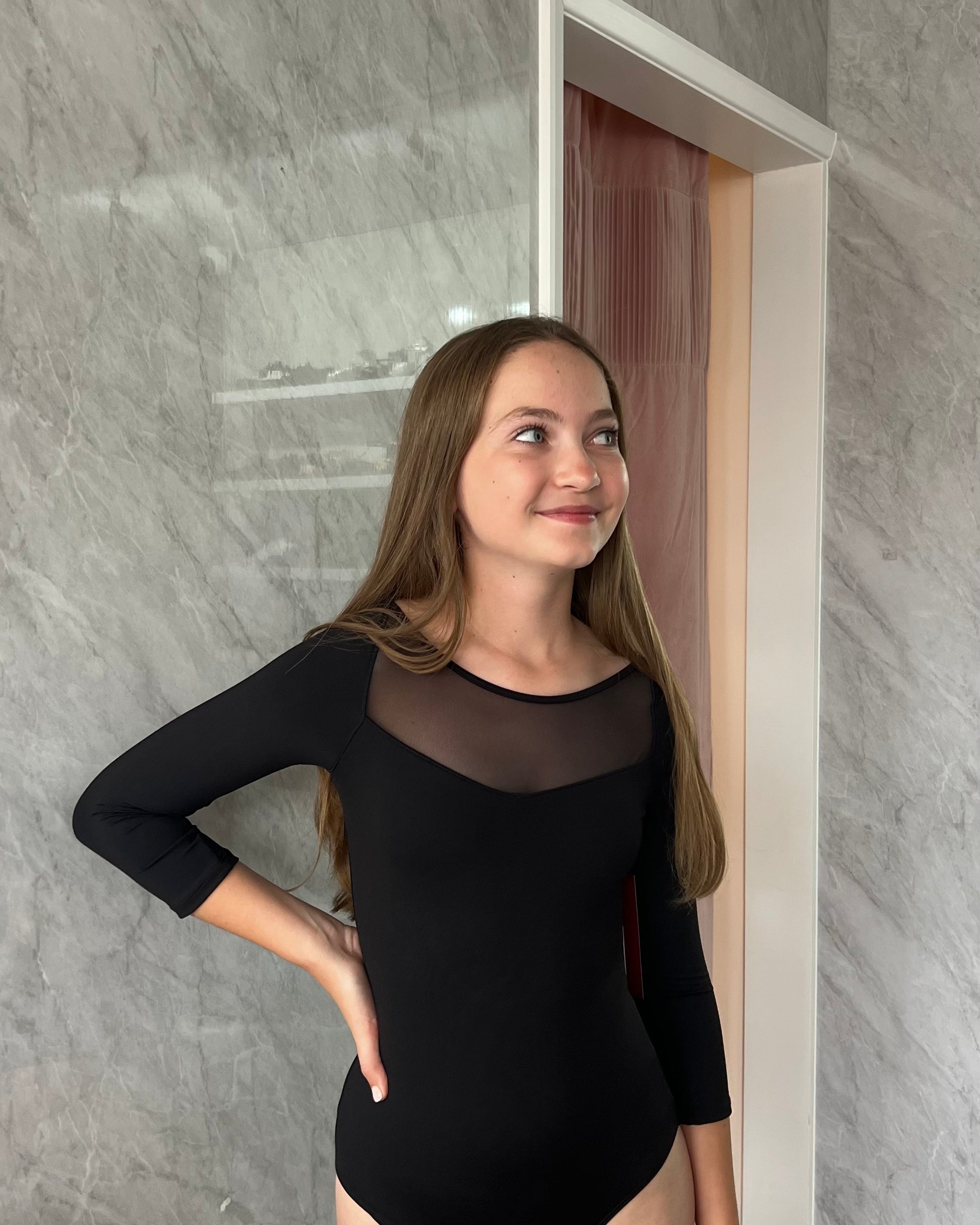 Mirella 3/4 Sleeve Leotard - Black